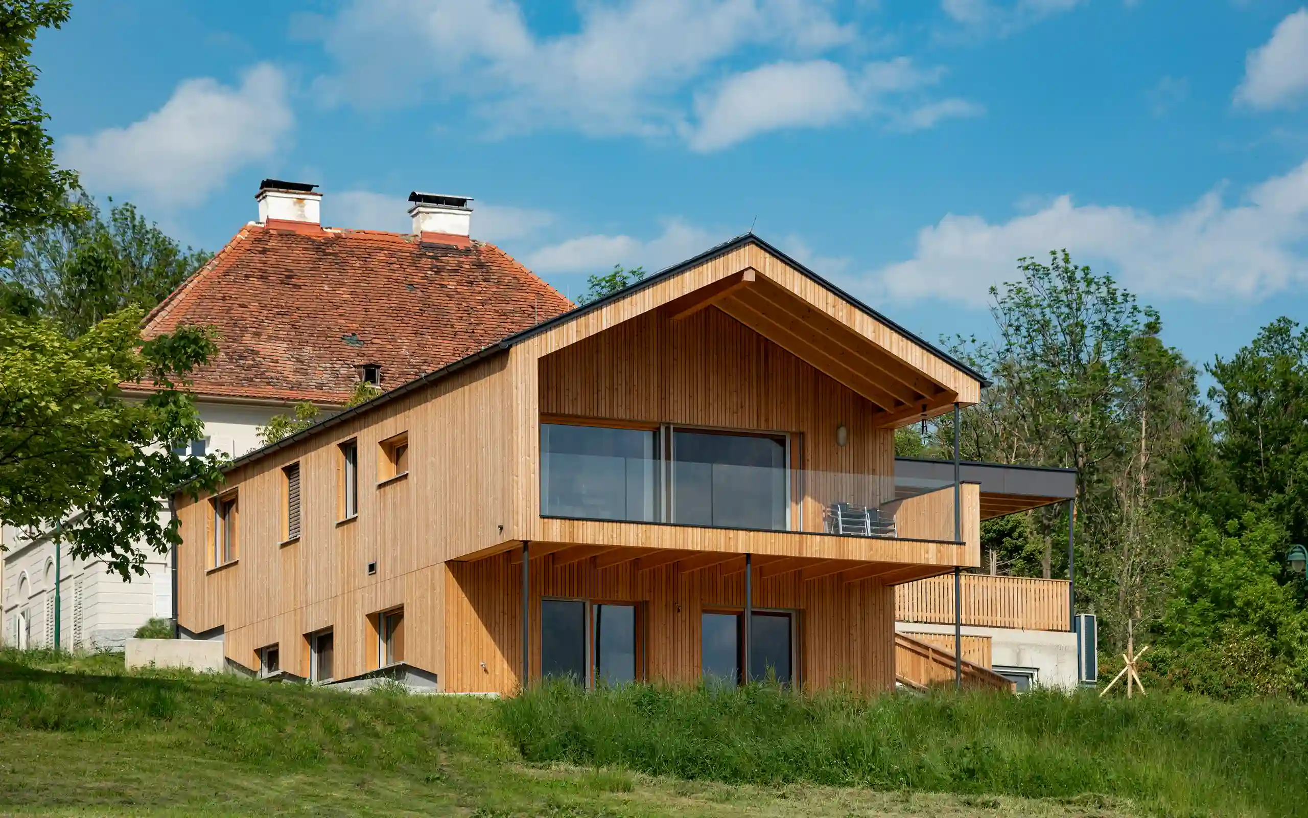 Nachhaltiger, ökologischer Holzbau mit Fassade aus Thermokiefer.