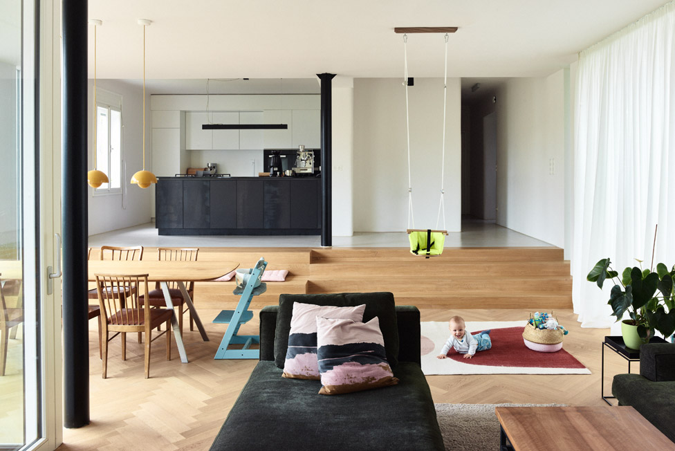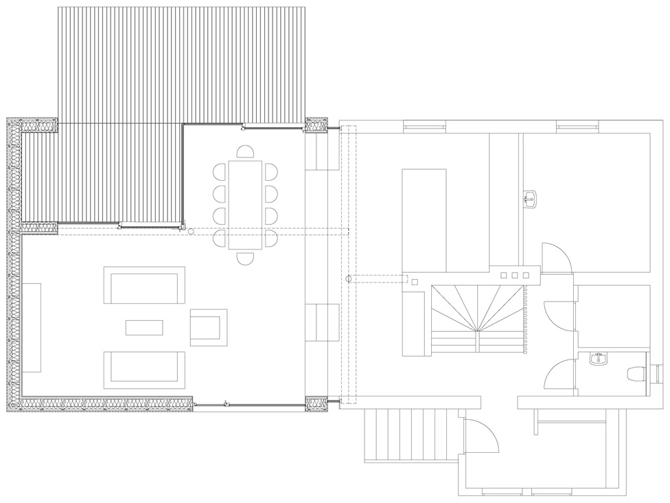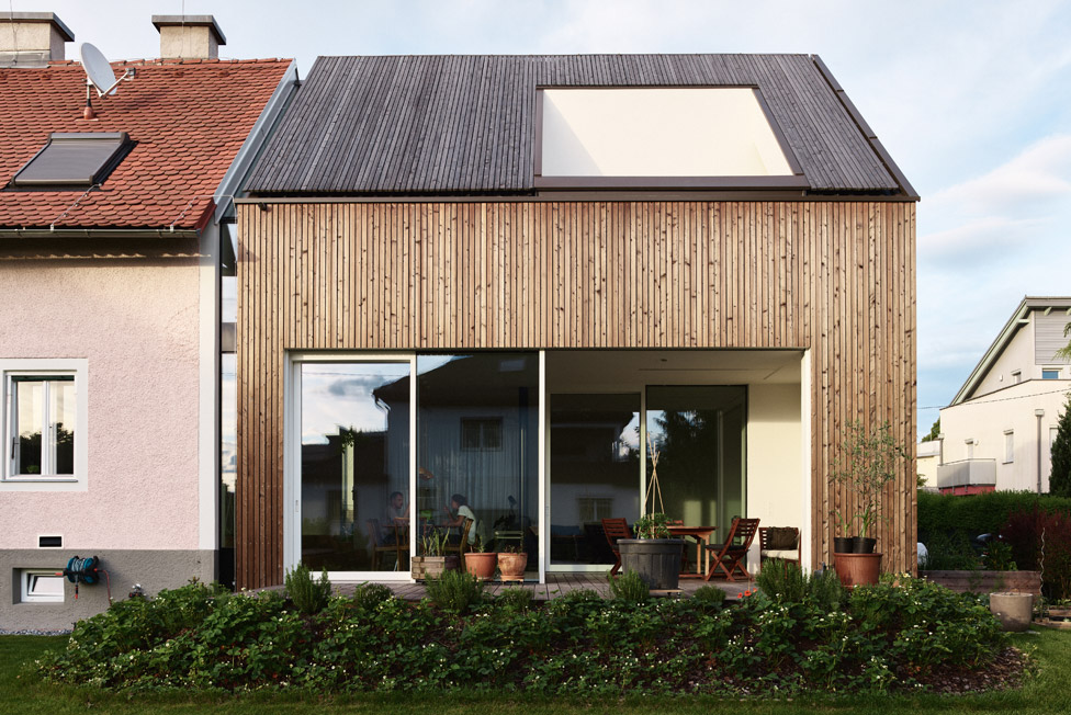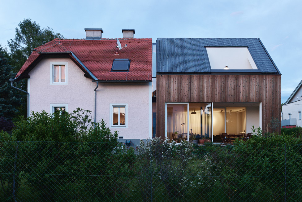 Das in den 20er Jahren erbaute Gebäude befand sich ursprünglich im Besitz der Großeltern, weshalb eine Erhaltung des Bestandes angestrebt wurde. Die Entwurfsaufgabe bestand in der Adaptierung eines Einfamilienhauses für eine junge Familie. Auch aus ökologischen und finanziellen Gründen entschied man sich dazu das alte Haus zu sanieren und um einen Zubau aus Holz zu erweitern. Bewusst verzichtete man auf den Einsatz eines Vollwärmeschutz, auch die bestehenden Kastenfenster wurden saniert und der Innenflügel abgedichtet. Neben der Größe, war vor allem der Gartenzugang und Bezug eine der Hauptanforderungen der neuen Bewohner.
